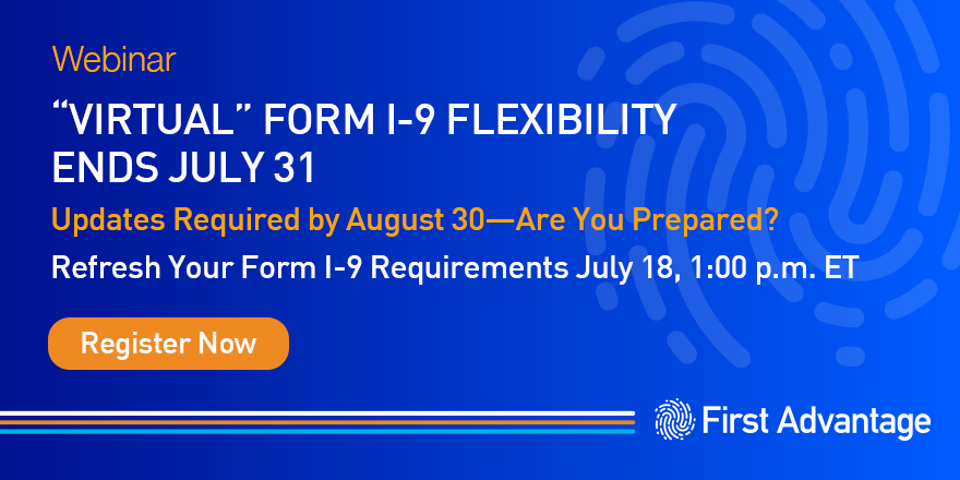 Save your seat for our must-know Form I-9 refresher webinar on Tuesday, July 18, at 1:00 p.m. ET.