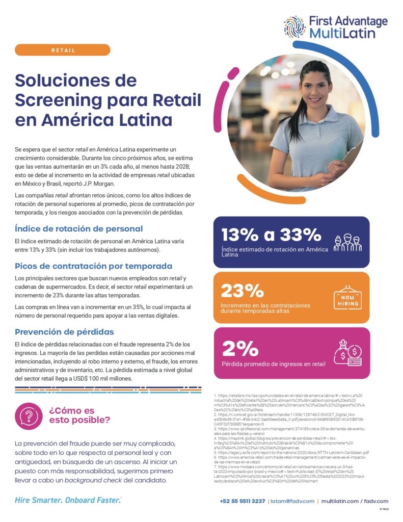 Las compañías del sector retail afrontan retos únicos, como los altos índices de rotación de personal, picos de contratación por temporada y los riesgos asociados a la prevención de pérdidas.